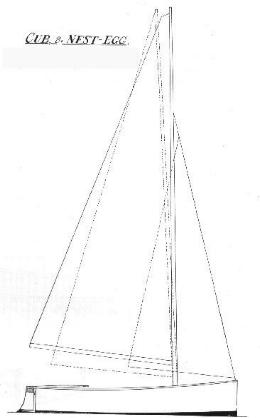 CUB and NEST EGG 8-6 sailing dinghy designed in 1935 for cadets. Cub was built for Johnny Wilson and Nest Egg for Paul Hammond. Cub fitted with two sail cutter rig. Nest Egg single sail.