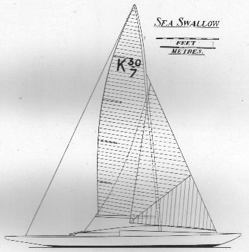 SEA SWALLOW was Uffa's first Thirty-Square Metre design and she was built in his yard for Colonel Richardson for the 1938 season. The requirement was for a light weather 'thirty' as she was meant to be part of a team to race in America later that year.